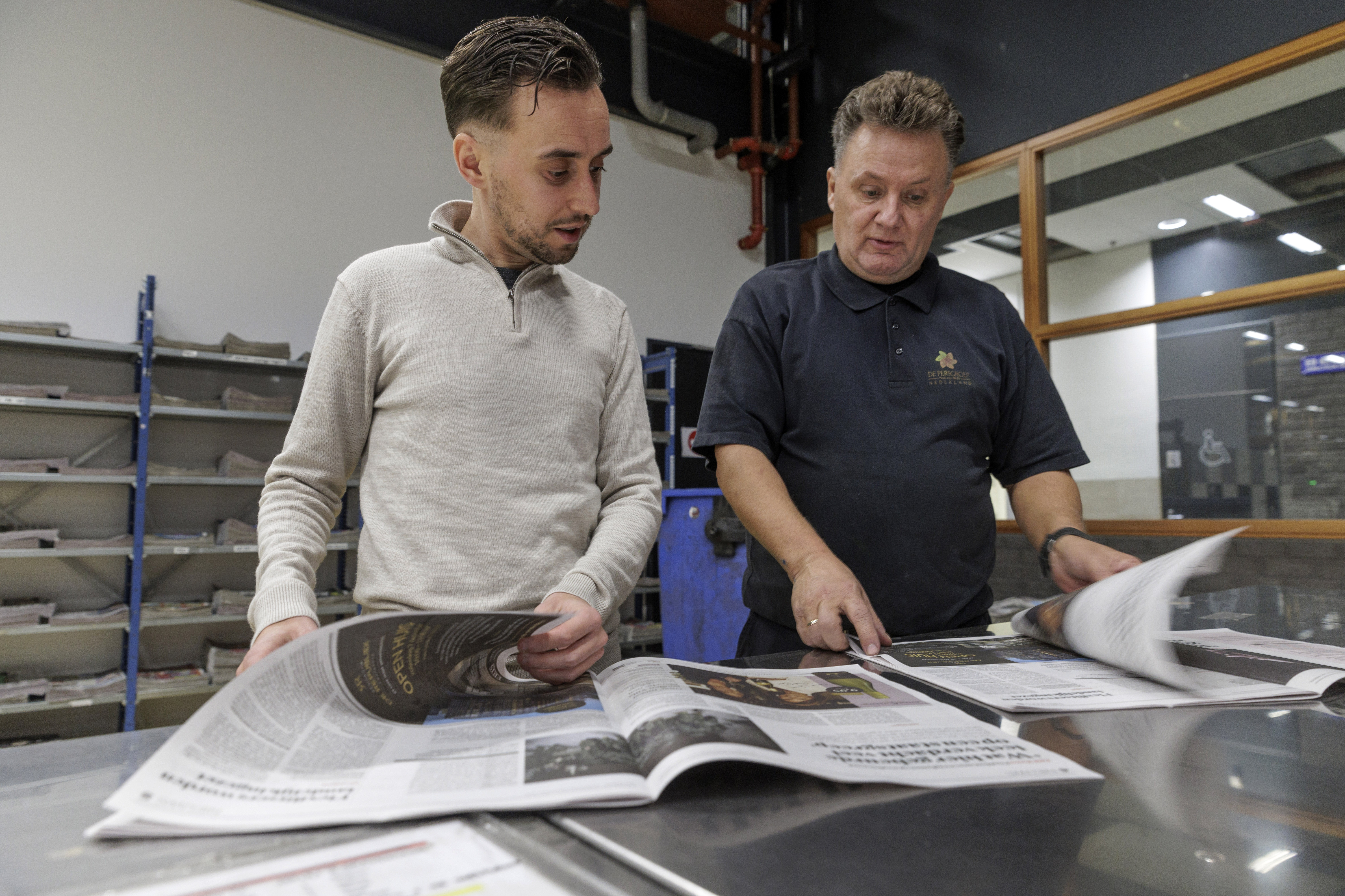 ​​​​​​​Laat in de avond voelt het terrein van Mediavaert misschien verlaten aan, maar in de drukkerij naast het hoofdkantoor komt het werk juist op gang. In de hal staat Peter Beekelaar met een glimlach klaar. “Kom verder, mijn zoon Jordy zal zo aansluiten.”