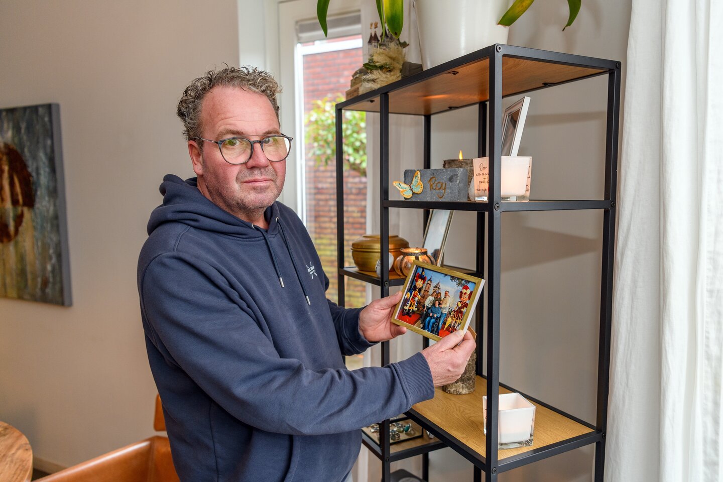 Roger Janssen bij de gedenkhoek voor zijn overleden vrouw Erica en hun zoon Roy.